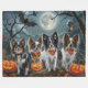 Unleash the spooky spirit with this eerie Halloween design featuring a pack of dogs under a dark, moonlit sky, surrounded by flying bats and glowing pumpkins. Perfect for those who love a touch of frightful fun with their furry friends!