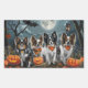 Unleash the spooky spirit with this eerie Halloween design featuring a pack of dogs under a dark, moonlit sky, surrounded by flying bats and glowing pumpkins. Perfect for those who love a touch of frightful fun with their furry friends!
