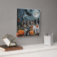 Unleash the spooky spirit with this eerie Halloween design featuring a pack of dogs under a dark, moonlit sky, surrounded by flying bats and glowing pumpkins. Perfect for those who love a touch of frightful fun with their furry friends!
