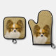 Papillon Painting Lemon and White Original Dog Art Oven Mitt & Pot Holder Set