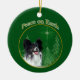 Peace on Earth. Show your reason for the season with your Papillon in this unique dog design accented with green and gold. Makes a unique Papillon owner gift.