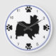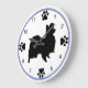 A dog lover clock featuring the silhouette of a papillon, with paw prints marking the quarters.