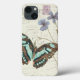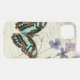 © Pela Studio / Wild Apple.  A blue and brown butterfly with purple flowers and stems. An off white background with French text can be seen on the image.
