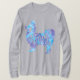 Creative Design using the outline of a Papillon dog to create the lettering of the breed name. A pretty blue and purple tie dye pattern fills the letters.