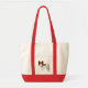 Love the durable cream colored canvas and navy blue contrasted handles. Perfect for carrying my laptop and papers.