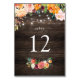 This table number card shows a bouquet of flowers on top and one at the bottom features a gorgeous palette of burgundy, gold, coral, blush and leafy greens with a rustic background. Just click on the "customise further" button to customise. This product is designed to Match our Paprika burgundy floral collection available in this store.