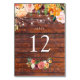 This table number card shows a bouquet of flowers on top and one at the bottom features a gorgeous palette of burgundy, gold, coral, blush and leafy greens with a rustic background. Just click on the "customise further" button to customise. This product is designed to Match our Paprika burgundy floral collection available in this store.