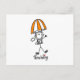 A basic stick figure parachuter is coming in for a landing with a big smile on his face and waving to all on our Parachuting T-shirts, cards, mugs, tote bags, and other Parachuting items.
