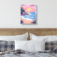 Paradise Cove | Pink Watercolor Ocean Waves Sunset Canvas Print