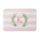 This fun trendy design features a blush pink and white striped background with colourful floral wreath. Personalise the design with your monogram initial or other text. Use the design tools to choose any background colours, edit the text fonts and colours or upload your own photos to create a unique monogrammed bath mat.