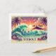Here’s the watercolor-style travel postcard featuring Hawaii with surfers riding multiple waves, a retro sunset, and soft, fluid brushstrokes. 🌴🌊🏄♂️🌺 The text "Paradise Found: Hawaii!" is in elegant, flowing script with a watercolor texture, creating a dreamy, tropical vibe