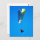 A Paraglider flying in a cloudless blue sky above the Westbury White Horse in Wiltshire, England, United Kingdom