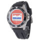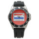 Has heft and feel of expensive stainless steel quartz wrist watches. Solid construction and good looks. Although it had a really top quality rubber strap, I substituted a stainless steel "Shark" style mesh strap, which I think is the most comfortable strap available. Perfect. True colors of original image. Clear, crisp image precisely aligned and spaced.