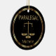 ⭐⭐⭐⭐⭐ 5 Star Review. Paralegal ornament ready for you to personalise. Featuring a Black and Gold design with the scale of justice symbol and the words "Paralegal" in a gold font placed across the top ready for you to personalise. Makes a great gift for any paralegal. 📌If you need further customisation, please click the "Click to Customise further" or "Customise or Edit Design"button and use our design tool to resize, rotate, change text colour, add text and so much more.⭐This Product is 100% Customisable. Graphics and / or text can be added, deleted, moved, resized, changed around, rotated, etc... 99% of my designs in my store are done in layers. This makes it easy for you to resize and move the graphics and text around so that it will fit each product perfectly. 📌 (Please be sure to resize, change, add, delete or move any graphics or text if needed before ordering) You can also "TRANSFER DESIGN" on other Zazzle products and adjust the design to fit most of Zazzle items. (click on the transfer area below) Some of the text graphics have ready to fill in the box(es) or you can Click on the "CUSTOMIZE" button to add, move, delete, resize, background colour or change any of the font or graphics. The design is made with high resolution vector and/or digital graphics for a professional print. 📌NOTE: (THIS IS A PRINT. All Zazzle product designs are "prints" unless otherwise stated under "About This Product" area) The design will be printed EXACTLY like you see it on the screen and on the product...so please make sure when you do your changes on the resizing of any of the graphics or text that it fits in the areas correctly and that your spelling and wording is how you like it to be in size, colour and font. If you have any questions about the "DESIGN ONLY" or need help please contact me through my store link: https://www.zazzle.com/store/LetsUDesignIt (Copy and Paste) I'll be happy to help. ⭐ ALL OTHER QUESTIONS SUCH AS (shipping, refund, the printing being incorrect, the product itself, etc...) please contact Zazzle or the Maker ⭐DIRECTLY⭐. Thank you for the support and stopping by my store - LetsUDesignIt. ⭐⭐⭐ ZAZZLE promises 100% satisfaction. If you don't absolutely love it, Zazzle will take it back! ⭐⭐⭐ 1-888-8ZAZZLE (1-888-892-9953) Phone hours: Mon - Fri: 9AM - 5PM PT (12PM - 8PM ET)