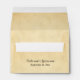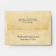 A wedding design with a printed background design in the style of vintage old paper, designed to look similar to a faux parchment pattern. The background is a pattern print in yellowy beige / tan colours. There is stylish black text that can be personalised.