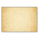 A wedding table setting place card design with a printed background design in the style of vintage old paper, designed to look similar to a faux parchment pattern. The background is a pattern print in yellowy beige / tan colours. There is stylish black text that can be personalised. Seating and table number cards for wedding guests.