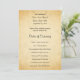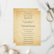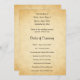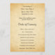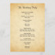 A wedding program design with a printed background design in the style of vintage old paper, designed to look similar to a faux parchment pattern. The background is a pattern print in yellowy beige / tan colours. There is stylish black text that can be personalised.