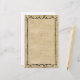 Elegant stationery with textured parchment look and ornate vine border.