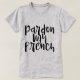 Let this funny graphic tee beg pardon for you! Show off your great sense of humor with this humorous t-shirt featuring "Pardon My French" in a trendy cursive font!