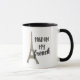 Funny mug with "Pardon my French," written with calligraphy and handwritten fonts over an image of the Eiffel tower.