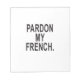 Funny yet very simple, Pardon My French is perfect for the mischievous fashionista looking for a humourous tee shirt, great for the pastry chef or French teacher, or for the Francophile with a sense of humour. In crisp black text or French Vanilla.