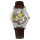 I like the illustrative watch with the lady on it. It is a great reminder that I am blessed and it has a very sturdy leather band. The colors are true and vibrant. Love the color of the Leather also. Very nice.
