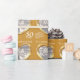 Wedding anniversary wrapping paper in golden yellow tones. Personalise this anniversary paper with your own photo and parent's name and anniversary year. Currently reads To a amazing Mum & Dad Happy Anniversary 50 years. Beautiful liquid gold effect in a heart shape printed graphics 50th Golden Wedding Anniversary wrapping paper ideal to wrap up a special gift for your parents on their 50th Anniversary which is traditionally associated with gold and a heart symbolises love. Unique art and design for a special 50th golden wedding Anniversary by Sarah Trett.