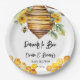 Parents to bee spring flowers honey bee baby shower template party plates personalised tableware decor, bee hive with yellow flowers and bees honey comb baby shower paper plates