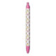 This design features watercolor perfum bottles on a black and white polka dotted background.