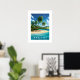 Poster is shown with a photo art print of a beautiful tropical beach.