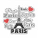 Paris text design illustration with Eiffel Tower and red hearts decoration