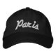 Paris White embroidery on Black cotton hat. Embroidery is customisable to other colour choices by selecting the "Edit Design" tool button. Also available is the option to select choice of hat colour on the main item page.