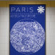 Modern circular city map of Paris in blueprint style, featuring clean white streets on a deep navy background.