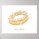 A delicious ink and watercolor image of a Paris-Brest pastry. The pastry was created in 1910, named and created to commemorate the Paris-Brest-Paris bicycle race. A tasty image for any decor!