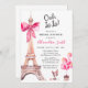 Cute watercolor Paris bridal shower invitation features a watercolor Eiffel Tower, a cute French dog, macarons, and a shopping box with balloons. Personalise with your event information.