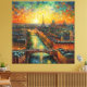 a painting of Paris by night with the Eifel Tower in the background painted in the style of famous Dutch painter Vincent van Gogh