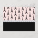 Chic postcards feature a pink and black eiffel tower pattern topped with a row of ivory pearls.