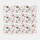 French Christmas with a vintage Eiffel Tower, fleur de lis, and PARIS text and wreath in black and white, along with holly, poinsettia, victorian Christmas trees and pine branches in red and green on white, to make a festive French Noel fleece blanket.
