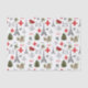 French Christmas with a vintage Eiffel Tower, fleur de lis, and PARIS text and wreath in black and white, along with holly, poinsettia, victorian Christmas trees and pine branches in red and green on white, to make a festive French Noel tissue paper for crafts and decoupage or gift wrapping.