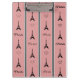 Paris illustration with Eiffel Tower and heart decoration and Paris text design on black, white and pink striped background