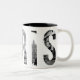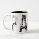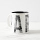 Stylish ceramic coffee mug with the word PARIS printed in black and white photo.