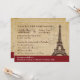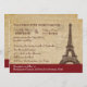 Start off a romantic Parisian destination wedding with an unusual invitation meant to look like a postcard from a bygone era. The background is made to look like an aged letter with subtle engraving, cursive handwriting and visa and postage stamps. The Eiffel Tower is dominant on top of a maroon panel. The paper background is repeated on the reverse to highlight extra information for your guests with a website at the bottom. Available with matching products.