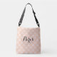 This design Paris with peach diamond pattern looks trendy on this all over print cross body bag. Design by Inge Lewis. Perfect for shopping or going out in style. Find more matching items at the ingeinc.com online boutique.