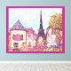 40x32" wrapped canvas of Paris Eiffel Tower inspired pointillism landscape by Kristie Hubler, with orchid fuschia border. Created in 2011, sister version of Paris Eiffel Tower inspired impressionist landscape by Kristie Hubler done in 2002. Originally done on 8 1/2" x 11" printer paper and 2 ounce bottles of craft store acrylic paint, plus coloured pencil, and marker, tweaked digitally with Photoshop Elements. Paris Eiffel Tower inspired pointillism landscape by Kristie Hubler basically took the former art that it was based on, and slipped that into a sheet protector page, and painted over the main key features in the original, and filled in the rest a little differently. This one has sold on Keds sneakers, shower curtains, duvet covers, area rugs, bottle openers, bath sets, a Christmas stocking, fabric. This pointillism art was inspired by the famous pointillist painter Georges Seurat, who painted La Grande Jatte, hanging in the Metropolitan Museum of Art in New York City. Thank you! Kristie