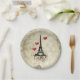 Paris, Eiffel Tower and Red Heart Balloons Script Paper Plate
