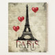 This beautiful Eiffel Tower design features the Eiffel tower on a with a gothic red and grey word "Paris" and floating red heart balloons.