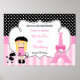 A cute Paris Eiffel Tower Blonde Girl Pink & Black Birthday Poster for that special occasion.