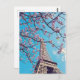 This postcard features an original photograph of the Eiffel Tower behind springtime blossoms.