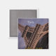 A magnet with a photograph of the famous European landmark - the Eiffel Tower taken at an upward facing angle giving it an interesting perspective. The