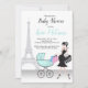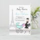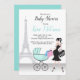 Paris Theme Invitation, elegant and stylised. Eiffel Tower visual and a lovely generic colours makes a wonderful Baby Shower theme for your celebration.